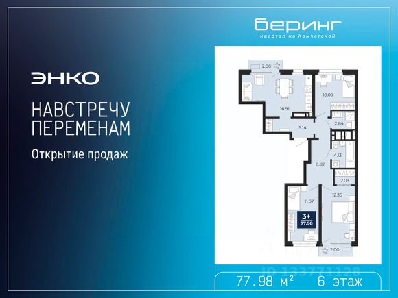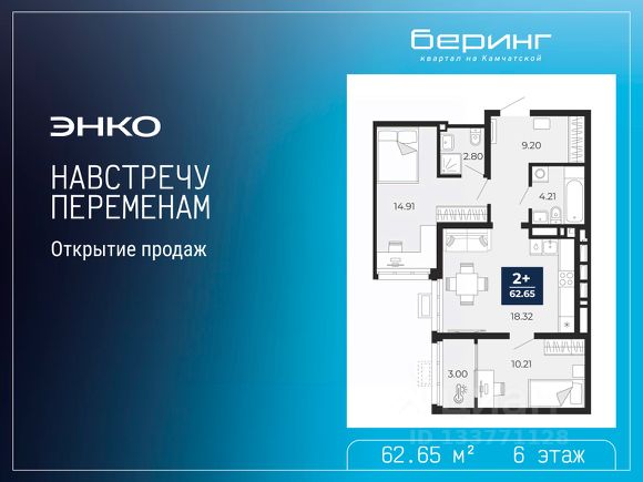 Просторная 2-комн. квартира с предчистовой отделкой в ЖК "Беринг" на 6 этаже. Общая площадь: 62.65 кв.м., жилая: 25.12 кв.м., площадь просторной кухни-столовой: 18.32 кв.м. Комнаты изолированные, все окна выходят на одну сторону. В квартире одна лоджия, два совмещенных санузла. Высота потолков 2.72 м. Дом монолитный, многоподъездный, переменной этажности, от 17 до 24 этажей. Квартира находится в 3-й секции высотой 24 этажа в корпусе ГП-75. На этаже 6 квартир. В подъезде 2 пассажирских и 1 грузовой лифт. Окончание строительства - 4 квартал 2027 года. Оформление сделки по договору долевого участия. Подобно знаменитому исследователю, мы чувствуем себя первооткрывателями этой локации. Хотим показать новую суть места, сформировать для вас жизненный опыт, которого ещё не было. Беринг — район зелёного цвета. Беринг — район, который откроется вам с другой стороны. Впечатлит новым уровнем комфорта и качеством жизни. Беринг — открытие на карте города. Первый квартал расположен в районе Тура, в границах улиц: Камчатская Западносибирская Энтузиастов. Вокруг уже есть всё для того, чтобы ежедневная рутина была лишь частью жизни и не доставляла дискомфорта. Школы и детские сады, магазины и аптеки, поликлиника, места для семейного отдыха, пеших и велопрогулок, и даже рыбалки. Масштабное озеленение дворов — визитная карточка ЭНКО и ваш оазис спокойствия, чтобы отвлечься от повседневности. Раскидистые деревья, кустарники, травы и цветы — осталось остановиться, вдохнуть и расслабиться, глядя на эту природную красоту. Стилистика подъездов продолжает концепцию Беринга, вдохновлённого Камчаткой: сдержанный, но при этом впечатляющий дизайн соседствует с удобством и функциональностью.