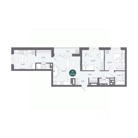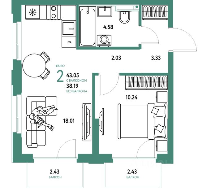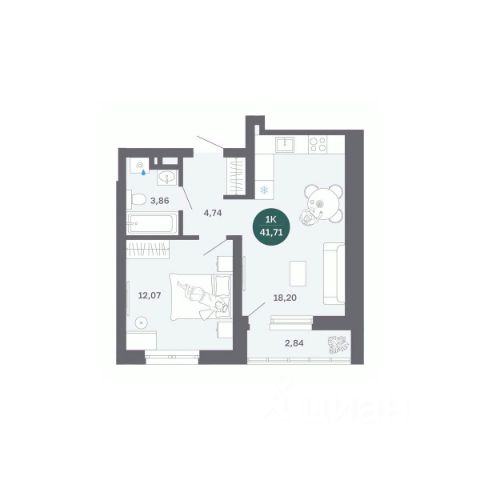 Продается очень уютная квартира формата 1+ площадью 66.5 м2 на 6 этаже с качественным ремонтом и мебелью в престижном и современном квартале "НОВИН" в центре города Тюмени!
