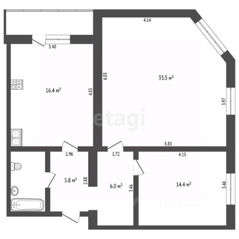 Квартира 3 комнатная площадью 59 кв.м. на 2-ом этаже.