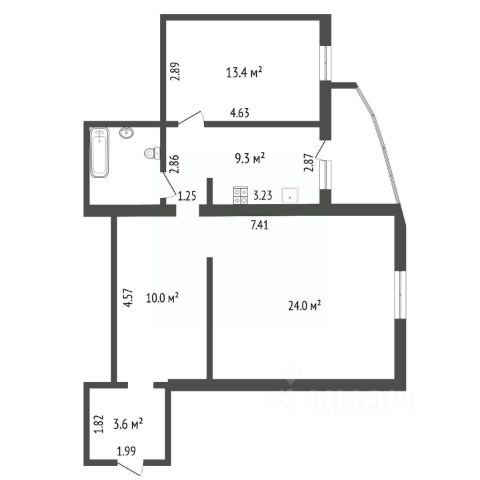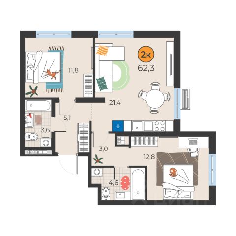 планировкой: общая площадь 58,3 кв.м. и плюсом к данной площади
