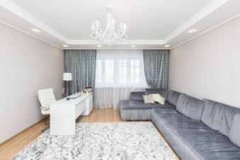 В квартире свежий косметический ремонт. Стены ровные, поклеены обоями, на полу линолеум, натяжные потолки с точечным освещением, теплый пол в санузле.