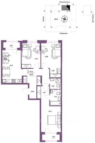 Квартира в счёт первоначального взноса по программе обмена. Звоните, мы вам все подробно расскажем! Трехкомнатная квартира с предчистовой отделкой в ЖК "Зарека" на 6 этаже. Общая площадь: 89.23 кв.м., жилая: 38.9 кв.м., площадь просторной кухни-гостиной: 21.7 кв.м. Квартира - распашонка, без проходных комнат, окна выходят на paзные стороны дома. В квартире один балкон, два совмещенных санузла. Высота потолков 2.7 м. Дом монолитный, многоподъездный, переменной этажности, от 6 до 16 этажей. Квартира находится во 2-й секции высотой 9 этажей в корпусе 5-2. На этаже 3 квартиры. В подъезде 1 пассажирский и 1 грузовой лифт. Окончание строительства - 4 квартал 2026 года. Оформление сделки по договору долевого участия. Квартира с кухней-гостиной и тремя спальнями в жилом районе "Зарека". Особенности планировки: гардеробная, разнесённые спальни, предчистовая отделка, мастер-спальня, балкон. квартиры в нашей базе: ЗРК05.2-Ж2.6.3. Проект На планировочную структуру "Зареки" повлияла близость к автомобильному мосту Челюскинцев. Мы расположили жилые здания так, чтобы они постепенно удалялись от проезжей части. Приём напоминает лесенку: чем сильнее мост возвышается над участком застройки, тем дальше по отношению к нему стоят дома. Этот ступенчатый сдвиг позволил нам сформировать буфер между кварталами и оживлённой магистралью. Мы намерены высадить здесь высокие деревья и создать дополнительную защиту от дорожных шума и пыли. В границах нашего участка мы намерены разместить школу и два встроенных детских сада на 135 и 150 мест. Общественные пространства С севера на юг территорию будет пронизывать пешеходный бульвар. Мы мыслим это общественное пространство как главный центр притяжения. На нём будут сосредоточены основные детские игровые и спортивные зоны, места для встреч и спокойного отдыха. Он также сыграет роль мостика, ведущего к другим нашим проектам — "Европейскому кварталу" и "Дому у озера". Одна из базовых идей мастер-плана касается береговой линии. Сегодня озеленение этой территории носит стихииныи характер, а прямому доступу к Туре препятствует дамба. Мы хотим благоустроить пространства у воды и открыть их для людей. Архитекторы спроектировали систему многоярусных троп и спусков к реке, смотровые площадки и места для активного отдыха и пикников. #z55cmF