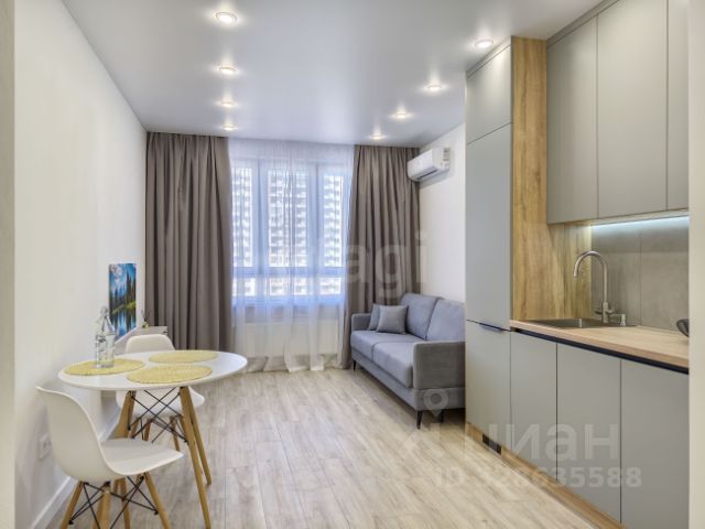 Окна квартиры выходят на солнечную сторону,во двор и от прямых лучей закрыты темными римскими шторками и тюль в спальной зоне.