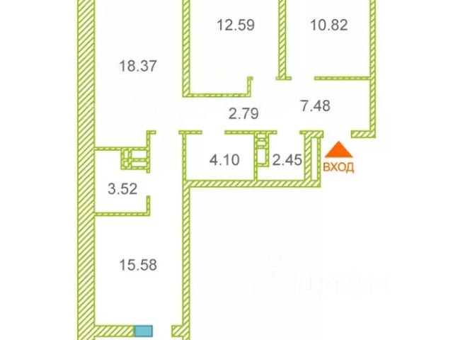 - Гардеробная 1,5 м2 за зеркальными раздвижными дверями.