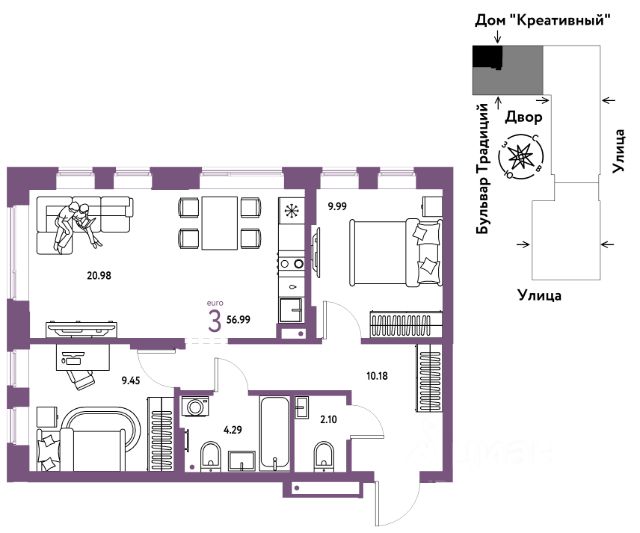 1-комн. квартира с предчистовой отделкой в Кварталы "На Минской" на 6 этаже. Общая площадь: 46.23 кв.м., жилая: 12.2 кв.м., площадь просторной кухни-гостиной: 21.5 кв.м. Все окна выходят на одну сторону. В квартире один балкон, один совмещенный санузел. Высота потолков 2.7 м. Дом монолитный, многоподъездный, переменной этажности, от 7 до 16 этажей. Квартира находится в 4-й секции высотой 7 этажей в корпусе 1. На этаже 5 квартир. В подъезде 1 грузовой лифт. Окончание строительства - 4 квартал 2026 года. Оформление сделки по договору долевого участия. Квартира с кухней-гостиной и одной спальней в кварталах "На Минской". Особенности планировки: балкон, предчистовая отделка. квартиры в нашей базе: МНС01-Ж4.6.3. В сердце города Кварталы "На Минской" находятся в самом центре. За десять минут можно дойти до площади 400-летия Тюмени и Большого Драматического театра, Тюменского индустриального и медицинского университетов, спортивного комплекса "Строймаш", ТРЦ "Гудвин" и "Премьер", Тюменского технопарка. Поблизости много детских садов, школ и поликлиник. Пространство разного опыта Создавая кварталы "На Минской" мы вдохновлялись Хакскими дворами в Берлине и улицей Давида Агмашенебели в Тбилиси. И первые и вторая — яркие разнообразные пространства, сформированные прогрессивными архитекторами и притягивающие городских интеллектуалов. Престижная недвижимость здесь соседствует с барами, ресторанами, креативными кластерами и бюро, дизайнерскими лавками. Полезные улицы Кварталы "На Минской" свяжет сеть променадов, автомобильных проездов и велодорожек. Уличный фронт проекта мы сформируем с помощью аллейной посадки деревьев. Они создадут тень для ресторанов и кафе на первых этажах, визуально отделят проезжую и пешеходную части, снизят объём пыли и уровень шума. Мы реализуем проект в районе с развитой базовой инфраструктурой. И поэтому тщательно подошли к программированию коммерции, посчитав, что её основная задача — "закрывать" более высокие потребности жителей. Здесь может появиться пекарня с вкусными круассанами, турагентство на случай, если захочется перезимовать в Сочи, массажный кабинет, ресторан, когда надоело есть дома и многое другое. #2480Vo