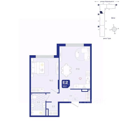Квартира с кухней-гостиной и одной спальней в жилом районе "Речной порт". Особенности планировки: окна в пол, предчистовая отделка. квартиры в нашей базе: РП-07-1-1.7.4. Новый центр притяжения В основу концепции жилого района "Речной порт", архитекторы заложили две ключевые идеи: сохранение идентичности и "возвращение" городу реки. Территорию они планировочно разделили на южную и северную части. Южная зона будет напоминать классический европейский город с гармонично спроектированными улицами, уютными дворами и центральной площадью. В северной части предусмотрены пешеходные маршруты и зеленые зоны с активными площадками, магазинами и ресторанами, открывающими виды на реку Туру. Мировой опыт на берегу Туры Проект вдохновлён успешными примерами реновации, такими как Хафенсити в Гамбурге и Нордхавн в Копенгагене. Основное внимание уделяется развитию, включая интеграцию исторических артефактов, таких как старинные краны и 35-летний дуб, который станет символом и местом отдыха для жителей района, подчеркивая связь с культурным наследием. Дух места При разработке проекта анализируется контекст и история места, что важно для формирования стратегии и сохранения наследия. В "Речном порту" останутся несколько артефактов, среди которых два портальных крана — "Ганц" и "Альбрехт", произведённые в Венгрии в 1960-х годах. "Ганц" будет находиться в южной части, а "Альбрехт" — на краю речного порта. Также в проекте предусмотрены полуторатонный якорь и пароходные винты. В северной части сохранится 35-летний дуб, который был включён в мастер-план, вокруг которого спроектированы зоны отдыха. #z5fFv5