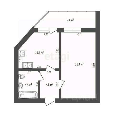 Квартира просторная, с функциональной планировкой, продуманной системой освещения, большой витражной лоджией. Комната 21,4 кв.м с выделенной гардеробной, уютная кухня 11,6 кв.м с выходом на лоджию, довольно просторный санузел.