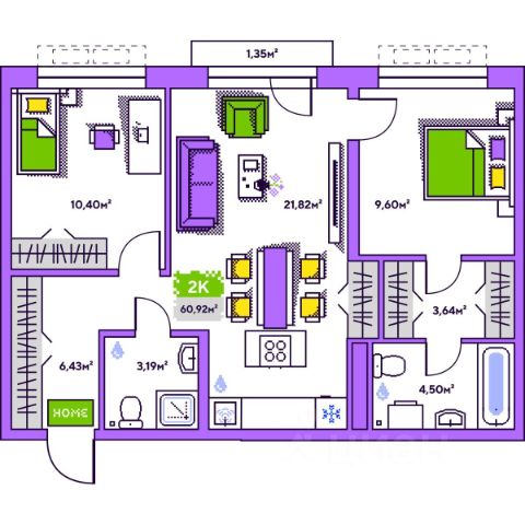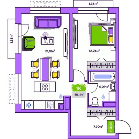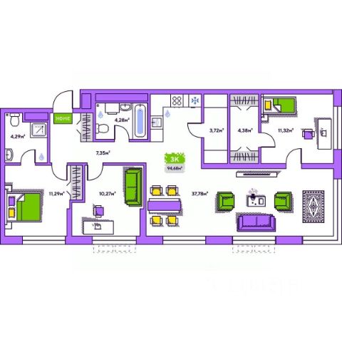 Площадь квартиры 85,4 кв м, кухня гостиная 46 кв, комнаты 15,2 кв и 15,1 кв м. В квартире есть кладовка, где сделаны стеллажи для хранения вещей. Квартира распашного типа, окна выходят на разные стороны, что обеспечивает прекрасную естественную вентиляцию и инсоляцию!