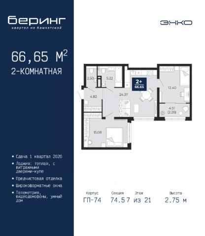 Продается 1-комн. квартира с предчистовой отделкой в ЖК "Беринг" на 7 этаже. Общая площадь: 38.03 кв.м., жилая: 12.19 кв.м., площадь просторной кухни-столовой: 15.5 кв.м. Все окна выходят на одну сторону. В квартире одна лоджия, один совмещенный санузел. Высота потолков 2.75 м. Дом монолитный, многоподъездный, переменной этажности, от 9 до 21 этажей. Квартира находится в 3-й секции высотой 9 этажей в корпусе ГП-74. На этаже 7 квартир. В подъезде 1 грузовой лифт. Окончание строительства - 1 квартал 2026 года. Оформление сделки по договору долевого участия. Подобно знаменитому исследователю, мы чувствуем себя первооткрывателями этой локации. Хотим показать новую суть места, сформировать для вас жизненный опыт, которого ещё не было. Беринг — район зелёного цвета. Беринг — район, который откроется вам с другой стороны. Впечатлит новым уровнем комфорта и качеством жизни. Беринг — открытие на карте города. Первый квартал расположен в районе Тура, в границах улиц: Камчатская Западносибирская Энтузиастов. Вокруг уже есть всё для того, чтобы ежедневная рутина была лишь частью жизни и не доставляла дискомфорта. Школы и детские сады, магазины и аптеки, поликлиника, места для семейного отдыха, пеших и велопрогулок, и даже рыбалки. Масштабное озеленение дворов — визитная карточка ЭНКО и ваш оазис спокойствия, чтобы отвлечься от повседневности. Раскидистые деревья, кустарники, травы и цветы — осталось остановиться, вдохнуть и расслабиться, глядя на эту природную красоту. Стилистика подъездов продолжает концепцию Беринга, вдохновлённого Камчаткой: сдержанный, но при этом впечатляющий дизайн соседствует с удобством и функциональностью. #Zmg26w