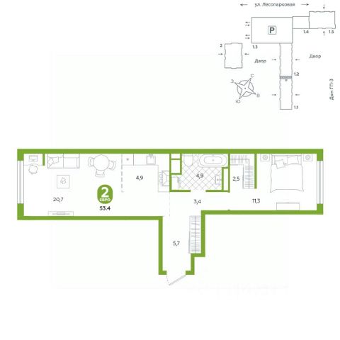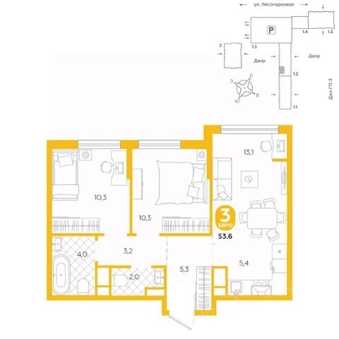 Квартира располагается в ГК "Чистые Пруды" от "Паритет девелопмент". Это флагманский проект компании в Тюмени. Расположение вдали от шумных улиц и оживленного центра создает ощущение жизни на природе и окружает тишиной и спокойствием. Есть вся необходимая социальная и коммерческая инфраструктура: магазины и сфера услуг на первых этажах. Школы, сады, поликлиника, парки в шаговой доступности. Квартал строится в районе Новой Лесобазы. Рядом выезд на объездную, что существенно экономит время. Поездка до центра города на автомобиле занимает 15-20 минут. Городские кварталы "Чистые Пруды" сформирован из домов переменной этажности и многоуровневых паркингов. Ввод 1 очереди строительства запланирован на II кв. 2028 года. Всё благоустройство квартала представлено двумя функциональными зонами: приватная внутри дворовая и общественная. Каждый закрытый двор имеет выход на единую променадную зону - бульвар. Концепция благоустройства основана на принципе модульности, что формирует основную идею приватности. Приватность проекта подчеркивает его особенный климат внутри. Модульное благоустройство позволит максимально эффективно использовать пространство двора и удовлетворить потребности различных категорий жителей. В квартирах базово выполнена улучшенная черновая отделка, которая включает в себя: выровненные стены, стяжка пола с шумоизоляцией, горизонтальная разводка отопления, установлены счетчики с телеметрией, окна с 5-камерным профилем и надежные входные двери. При желании можно добавить ремонт от застройщика и включить его в стоимость ипотеки, что позволит сэкономить на стройматериалах и переехать сразу после получения ключей. Характеристики квартиры: этаж - 7 количество комнат - 2 номер помещения - 69 площадь квартиры - 53,4 кв.мГармоничные пропорции и большие окна наполняют пространство светом, создавая уютную атмосферу. Умное зонирование позволяет удобно организовать как рабочую, так и жилую зоны, что особенно важно для современных жителей. Санузел спроектирован с учетом всех потребностей: здесь есть ванна и место для стиральной машины. Каждый метр квартиры используется с максимальной эффективностью, что делает эту планировку отличным выбором для тех, кто ценит комфорт и удобство.