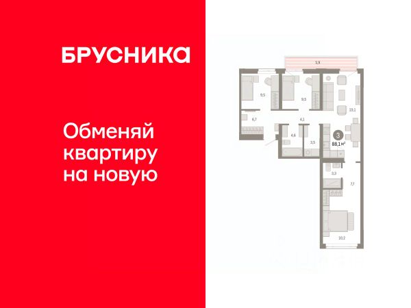Трехкомнатная квартира от застройщика с предчистовой отделкой в ЖК "Республики 205" на 7 этаже. Общая площадь: 108.16 кв.м. Высота потолков 2.7 м. Купить квартиру можно с помощью программ покупки от застройщика Брусника: - ипотека по эксклюзивной ставке с помощью в получении положительного кредитного решения через сервис ипотечный брокер; - квартиры в рассрочку без процентов от застройщика Брусника; - обмен квартиры на новую. Получить одобрение ипотеки или рассрочку, а также осуществить обмен квартир можно онлайн. Дом монолитный, многоподъездный, переменной этажности, от 7 до 16 этажей. Квартира находится в 4-й секции высотой 7 этажей в корпусе 2. На этаже 4 квартиры. В подъезде 1 грузовой лифт. Начало строительства - 1 квартал 2024 года. Окончание строительства - 1 квартал 2026 года. Оформление сделки по договору долевого участия. Район Проект расположен в границах улиц Пермякова, Энергетиков, Воровского и Республики. До центра города — 10 минут на машине. Рядом — автомобильная развязка на пересечении улиц Пермякова и Республики. В шаговой доступности есть школы, детские сады, поликлиники, крупный торговый центр, автовокзал и несколько скверов. Проект "Республики 205" — это проект комплексного развития территории, уникальный по своему наполнению. Переосмысляя бывшую территорию завода медицинского оборудования, мы создадим новое место силы — микрорайон, насыщенный деловой, развлекательной, рекреационной, игровой, образовательной и медицинской инфраструктурой. До каждого полезного сервиса здесь можно будет дойти за 15 минут. Локальными центрами "Республики 205" будут общественные пространства — скверы, парки, бульвары и площади. В границах нашего участка мы намерены разместить школу, рассчитанную на 1550 учеников, два детских сада на 300 мест и встроенный детский сад на 100 мест. В одном из цехов бывшего завода расположится креативный кластер "Кузница". Он станет площадкой для нескольких институций — галереи, лектория, книжного магазина-библиотеки, кинобара и точек креативного pop-up-ритейла. Пешеходные бульвары внутри района соединят между собой улицу ресторанов, детские и спортивные площадки, событийную площадь и летний кинотеатр. Идентификатор квартиры по базе застройщика: РСП-02-4-4. #ZUFfz9