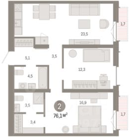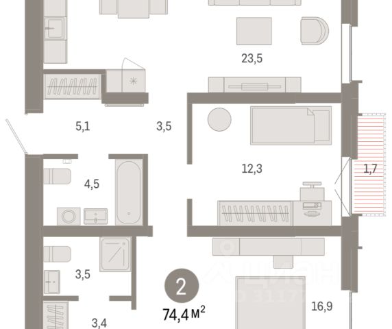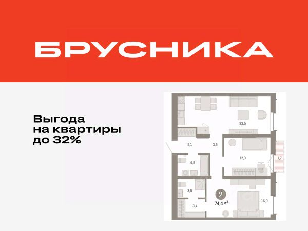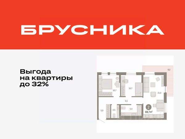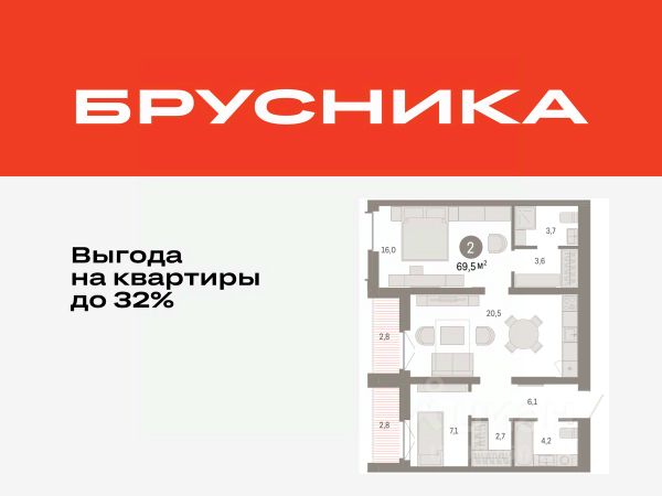 Квартира в счёт первоначального взноса по программе обмена. Звоните, наши менеджеры вам все расскажут! 2-комн. квартира с предчистовой отделкой в ЖК "Республики 205" на 7 этаже. Общая площадь: 66.41 кв.м., жилая: 18.9 кв.м., площадь просторной кухни-гостиной: 18.4 кв.м. Квартира - распашонка, без проходных комнат, окна выходят на paзные стороны дома. В квартире два балкона, два совмещенных санузла. Высота потолков 2.7 м. Купить квартиру можно с помощью программ покупки от застройщика Брусника: - ипотека по эксклюзивной ставке с помощью в получении положительного кредитного решения через сервис ипотечный брокер; - квартиры в рассрочку без процентов от застройщика Брусника; - обмен квартиры на новую. Получить одобрение ипотеки или рассрочку, а также осуществить обмен квартир можно онлайн. Дом монолитный, многоподъездный, переменной этажности, от 7 до 16 этажей. Квартира находится во 2-й секции высотой 8 этажей в корпусе 2. На этаже 4 квартиры. В подъезде 1 грузовой лифт. Начало строительства - 1 квартал 2024 года. Окончание строительства - 1 квартал 2026 года. Оформление сделки по договору долевого участия. Район Проект расположен в границах улиц Пермякова, Энергетиков, Воровского и Республики. До центра города — 10 минут на машине. Рядом — автомобильная развязка на пересечении улиц Пермякова и Республики. В шаговой доступности есть школы, детские сады, поликлиники, крупный торговый центр, автовокзал и несколько скверов. Проект "Республики 205" — это проект комплексного развития территории, уникальный по своему наполнению. Переосмысляя бывшую территорию завода медицинского оборудования, мы создадим новое место силы — микрорайон, насыщенный деловой, развлекательной, рекреационной, игровой, образовательной и медицинской инфраструктурой. До каждого полезного сервиса здесь можно будет дойти за 15 минут. Локальными центрами "Республики 205" будут общественные пространства — скверы, парки, бульвары и площади. В границах нашего участка мы намерены разместить школу, рассчитанную на 1550 учеников, два детских сада на 300 мест и встроенный детский сад на 100 мест. В одном из цехов бывшего завода расположится креативный кластер "Кузница". Он станет площадкой для нескольких институций — галереи, лектория, книжного магазина-библиотеки, кинобара и точек креативного pop-up-ритейла. Пешеходные бульвары внутри района соединят между собой улицу ресторанов, детские и спортивные площадки, событийную площадь и летний кинотеатр. Идентификатор квартиры по базе застройщика: РСП-02-2-2. #2SmgMc