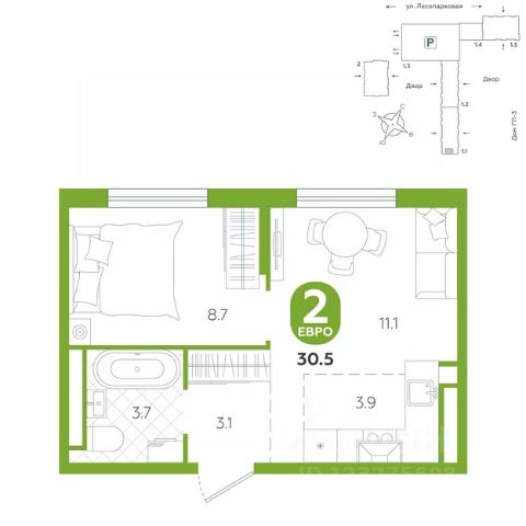 Квартира с кухней-гостиной и двумя спальнями в Октябрьском на Туре. Особенности планировки: балкон, предчистовая отделка, разнесённые спальни. квартиры в нашей базе: ОКТ-10-3-3.7.6. Район Проект расположен на берегу реки, в одном из самых живописных и экологичных районов Тюмени. За последние годы облик района изменился. По соседству с индивидуальной застройкой выросли многоквартирные дома. При проектировании "Октябрьского на Туре" нашей приоритетной задачей стало сохранение природного ландшафта: мы постарались деликатно вписать в него современную архитектуру. Квартал удачно расположен с точки зрения дорожной инфраструктуры. На автомобиле путь до центра города составит 15 минут. Добраться до набережной и главных тюменских достопримечательностей можно и на общественном транспорте. В пешей доступности находится автобусная остановка. Проект По мастер-плану здесь будет восемь домов. Ядро застройки составляют замкнутые кварталы переменной этажности. Их высотность понижается по мере приближения к реке. На углах участка мы разместили башни-доминанты. Одной из достопримечательностей квартала станет парк на Туре — здесь появится зеленая зона протяженностью около 6 километров для пеших и велопрогулок. Смысловая ось квартала — широкая главная улица с высаженными вдоль неё высокими деревьями. Они создают тень и работают как шумо- и пылезащитные экраны. Это место сосредоточения основных пешеходных и транспортных потоков, на сторону которых мы ориентировали большинство коммерческих помещений. Отсюда жители могут свернуть на тихие соседские улицы и попасть на внутриквартальную площадь — ещё одну точку притяжения. #zmmZ4Z