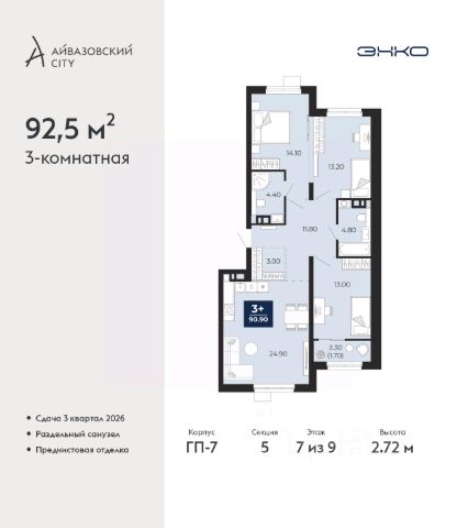Дом монолитный, трехподъездный, переменной этажности, от 14 до 23 этажей. Квартира находится во 2-й секции высотой 23 этажа в корпусе 206. На этаже 10 квартир. В подъезде 1 пассажирский и 1 грузовой лифт. Окончание строительства - 1 квартал 2026 года. Оформление сделки по договору долевого участия.