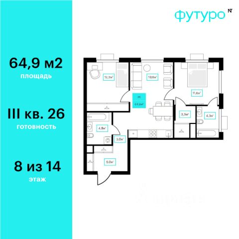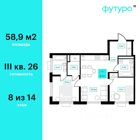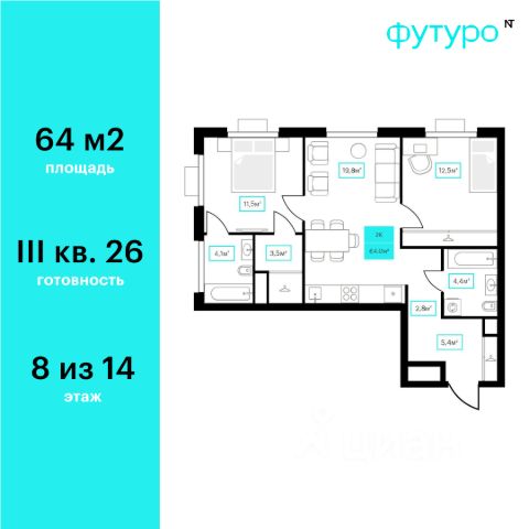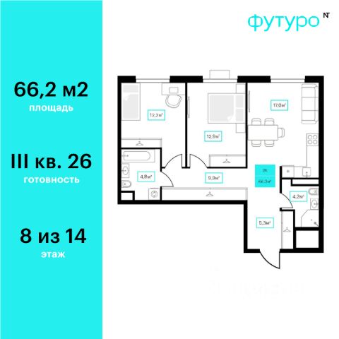 Продаётся 2-комнатная квартира в строящемся доме (ГП-1), срок сдачи: IV-кв. 2028, общей площадью 59.72 кв.м., на 8 этаже. Новый жилой комплекс "Континент" от Специализированного застройщика "Расцвет" расположен по адресу: г. Тюмень, по ул. Червишевский Тракт.