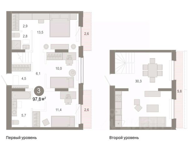 Двухуровневая квартира с кухней-гостиной и тремя спальнями в Октябрьском на Туре. Особенности планировки: балкон, вид во двор, гардеробная, двухуровневая, панорамное остекление, свободная планировка, терраса на крыше. квартиры в нашей базе: ОКТ-10-3-3.8.5. Район Проект расположен на берегу реки, в одном из самых живописных и экологичных районов Тюмени. За последние годы облик района изменился. По соседству с индивидуальной застройкой выросли многоквартирные дома. При проектировании "Октябрьского на Туре" нашей приоритетной задачей стало сохранение природного ландшафта: мы постарались деликатно вписать в него современную архитектуру. Квартал удачно расположен с точки зрения дорожной инфраструктуры. На автомобиле путь до центра города составит 15 минут. Добраться до набережной и главных тюменских достопримечательностей можно и на общественном транспорте. В пешей доступности находится автобусная остановка. Проект По мастер-плану здесь будет восемь домов. Ядро застройки составляют замкнутые кварталы переменной этажности. Их высотность понижается по мере приближения к реке. На углах участка мы разместили башни-доминанты. Одной из достопримечательностей квартала станет парк на Туре — здесь появится зеленая зона протяженностью около 6 километров для пеших и велопрогулок. Смысловая ось квартала — широкая главная улица с высаженными вдоль неё высокими деревьями. Они создают тень и работают как шумо- и пылезащитные экраны. Это место сосредоточения основных пешеходных и транспортных потоков, на сторону которых мы ориентировали большинство коммерческих помещений. Отсюда жители могут свернуть на тихие соседские улицы и попасть на внутриквартальную площадь — ещё одну точку притяжения. #24icbe
