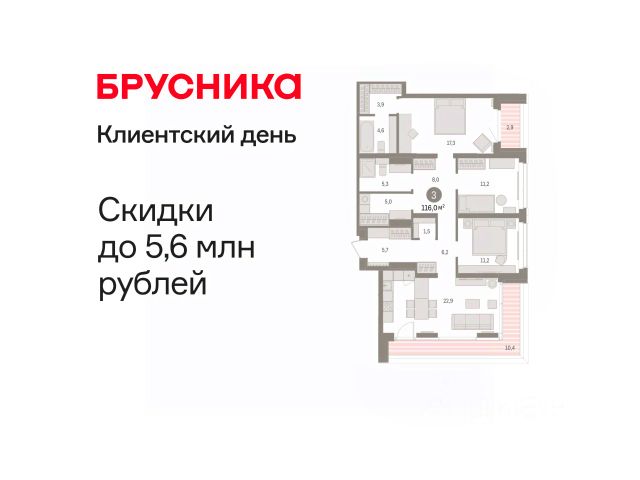 3-комн. квартира с предчистовой отделкой в Кварталы "На Минской" на 8 этаже. Общая площадь: 116 кв.м., жилая: 39.7 кв.м., площадь просторной кухни-гостиной: 22.9 кв.м. Угловая квартира, очень светлая, естественная вентиляция при открытии окон. В квартире один балкон и одна лоджия, два совмещенных санузла. Наличие в квартире террасы открывает возможность для обустройства дополнительной площади. Высота потолков 2.7 м. Дом монолитный, многоподъездный, переменной этажности, от 7 до 16 этажей. Квартира находится в 1-й секции высотой 16 этажей в корпусе 1. На этаже 8 квартир. В подъезде 2 пассажирских лифта. Окончание строительства - 4 квартал 2026 года. Оформление сделки по договору долевого участия. Квартира с кухней-гостиной и тремя спальнями в кварталах "На Минской". Особенности планировки: гардеробная, лоджия, мастер-спальня, панорамное остекление, постирочная, предчистовая отделка. квартиры в нашей базе: МНС01-Ж1.8.1. В сердце города Кварталы "На Минской" находятся в самом центре. За десять минут можно дойти до площади 400-летия Тюмени и Большого Драматического театра, Тюменского индустриального и медицинского университетов, спортивного комплекса "Строймаш", ТРЦ "Гудвин" и "Премьер", Тюменского технопарка. Поблизости много детских садов, школ и поликлиник. Пространство разного опыта Создавая кварталы "На Минской" мы вдохновлялись Хакскими дворами в Берлине и улицей Давида Агмашенебели в Тбилиси. И первые и вторая — яркие разнообразные пространства, сформированные прогрессивными архитекторами и притягивающие городских интеллектуалов. Престижная недвижимость здесь соседствует с барами, ресторанами, креативными кластерами и бюро, дизайнерскими лавками. Полезные улицы Кварталы "На Минской" свяжет сеть променадов, автомобильных проездов и велодорожек. Уличный фронт проекта мы сформируем с помощью аллейной посадки деревьев. Они создадут тень для ресторанов и кафе на первых этажах, визуально отделят проезжую и пешеходную части, снизят объём пыли и уровень шума. Мы реализуем проект в районе с развитой базовой инфраструктурой. И поэтому тщательно подошли к программированию коммерции, посчитав, что её основная задача — "закрывать" более высокие потребности жителей. Здесь может появиться пекарня с вкусными круассанами, турагентство на случай, если захочется перезимовать в Сочи, массажный кабинет, ресторан, когда надоело есть дома и многое другое. #2S5S29