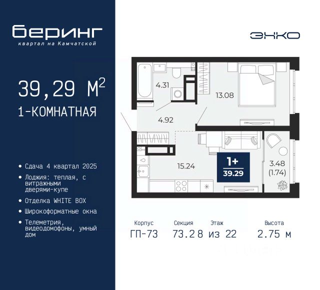 Продается 3-комн. квартира в ЖК "Беринг" на 8 этаже. Квартира без отделки, полностью готова к ремонту. Общая площадь: 73.45 кв.м., жилая: 34.76 кв.м., площадь просторной кухни-столовой: 19.04 кв.м. Квартира угловая, идеально подойдет любителям тишины и панорамных видов. В квартире одна лоджия, один совмещенный и один раздельный санузел. Высота потолков 2.75 м. Дом монолитный, многоподъездный, переменной этажности, от 9 до 22 этажей. Квартира находится в 1-й секции высотой 22 этажа в корпусе ГП-73. На этаже 5 квартир. В подъезде 1 пассажирский и 1 грузовой лифт. Окончание строительства - 4 квартал 2025 года. Оформление сделки по договору долевого участия. Подобно знаменитому исследователю, мы чувствуем себя первооткрывателями этой локации. Хотим показать новую суть места, сформировать для вас жизненный опыт, которого ещё не было. Беринг — район зелёного цвета. Беринг — район, который откроется вам с другой стороны. Впечатлит новым уровнем комфорта и качеством жизни. Беринг — открытие на карте города. Первый квартал расположен в районе Тура, в границах улиц: Камчатская Западносибирская Энтузиастов. Вокруг уже есть всё для того, чтобы ежедневная рутина была лишь частью жизни и не доставляла дискомфорта. Школы и детские сады, магазины и аптеки, поликлиника, места для семейного отдыха, пеших и велопрогулок, и даже рыбалки. Масштабное озеленение дворов — визитная карточка ЭНКО и ваш оазис спокойствия, чтобы отвлечься от повседневности. Раскидистые деревья, кустарники, травы и цветы — осталось остановиться, вдохнуть и расслабиться, глядя на эту природную красоту. Стилистика подъездов продолжает концепцию Беринга, вдохновлённого Камчаткой: сдержанный, но при этом впечатляющий дизайн соседствует с удобством и функциональностью. #ZsfMwb