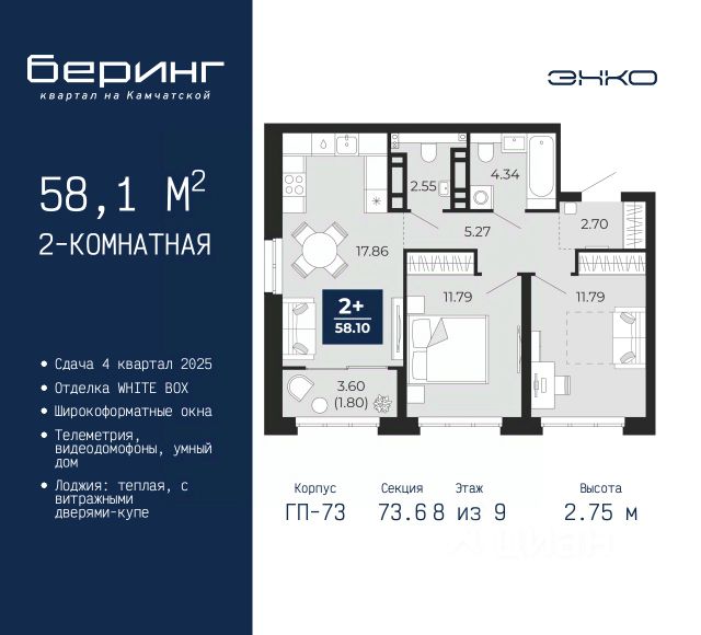 1-комн. квартира-студия от застройщика в ЖК "Беринг" на 8 этаже. Квартира без отделки, после выдачи ключей можно делать ремонт. Общая площадь: 32.12 кв.м., площадь гостиной 22.11 кв.м., из которых 5 кв.м. выделено под кухонную зону. Все окна выходят на одну сторону. В квартире один балкон, один совмещенный санузел. Высота потолков 2.75 м. Дом монолитный, многоподъездный, переменной этажности, от 9 до 22 этажей. Квартира находится в 73.6-й секции высотой 9 этажей в корпусе ГП-73. На этаже 5 квартир. В подъезде 1 пассажирский и 1 грузовой лифт. Окончание строительства - 4 квартал 2025 года. Оформление сделки по договору долевого участия. Подобно знаменитому исследователю, мы чувствуем себя первооткрывателями этой локации. Хотим показать новую суть места, сформировать для вас жизненный опыт, которого ещё не было. Беринг — район зелёного цвета. Беринг — район, который откроется вам с другой стороны. Впечатлит новым уровнем комфорта и качеством жизни. Беринг — открытие на карте города. Первый квартал расположен в районе Тура, в границах улиц: Камчатская Западносибирская Энтузиастов. Вокруг уже есть всё для того, чтобы ежедневная рутина была лишь частью жизни и не доставляла дискомфорта. Школы и детские сады, магазины и аптеки, поликлиника, места для семейного отдыха, пеших и велопрогулок, и даже рыбалки. Масштабное озеленение дворов — визитная карточка ЭНКО и ваш оазис спокойствия, чтобы отвлечься от повседневности. Раскидистые деревья, кустарники, травы и цветы — осталось остановиться, вдохнуть и расслабиться, глядя на эту природную красоту. Стилистика подъездов продолжает концепцию Беринга, вдохновлённого Камчаткой: сдержанный, но при этом впечатляющий дизайн соседствует с удобством и функциональностью. #Z355lu