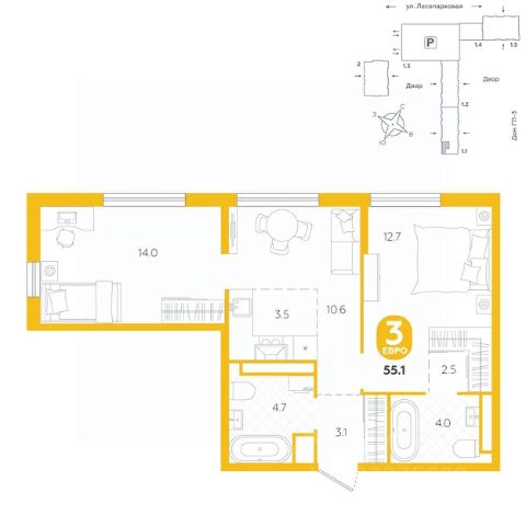Квартира располагается в ГК "Чистые Пруды" от "Паритет девелопмент". Это флагманский проект компании в Тюмени. Расположение вдали от шумных улиц и оживленного центра создает ощущение жизни на природе и окружает тишиной и спокойствием. Есть вся необходимая социальная и коммерческая инфраструктура: магазины и сфера услуг на первых этажах. Школы, сады, поликлиника, парки в шаговой доступности. Квартал строится в районе Новой Лесобазы. Рядом выезд на объездную, что существенно экономит время. Поездка до центра города на автомобиле занимает 15-20 минут. Городские кварталы "Чистые Пруды" сформирован из домов переменной этажности и многоуровневых паркингов. Ввод 1 очереди строительства запланирован на II кв. 2028 года. Всё благоустройство квартала представлено двумя функциональными зонами: приватная внутри дворовая и общественная. Каждый закрытый двор имеет выход на единую променадную зону - бульвар. Концепция благоустройства основана на принципе модульности, что формирует основную идею приватности. Приватность проекта подчеркивает его особенный климат внутри. Модульное благоустройство позволит максимально эффективно использовать пространство двора и удовлетворить потребности различных категорий жителей. В квартирах базово выполнена улучшенная черновая отделка, которая включает в себя: выровненные стены, стяжка пола с шумоизоляцией, горизонтальная разводка отопления, установлены счетчики с телеметрией, окна с 5-камерным профилем и надежные входные двери. При желании можно добавить ремонт от застройщика и включить его в стоимость ипотеки, что позволит сэкономить на стройматериалах и переехать сразу после получения ключей. Характеристики квартиры: этаж - 8 количество комнат - 3 номер помещения - 79 площадь квартиры - 57,6 кв.мГармоничные пропорции и большие окна наполняют пространство светом, создавая уютную атмосферу. Умное зонирование позволяет удобно организовать как рабочую, так и жилую зоны, что особенно важно для современных жителей. Санузел спроектирован с учетом всех потребностей: здесь есть ванна и место для стиральной машины. Каждый метр квартиры используется с максимальной эффективностью, что делает эту планировку отличным выбором для тех, кто ценит комфорт и удобство.