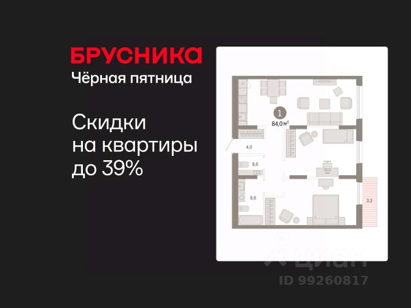 Продается однокомнатная квартира от застройщика с предчистовой отделкой в ЖК "Республики 205" на 8 этаже. Общая площадь: 84.02 кв.м., жилая: 40 кв.м., площадь просторной кухни-гостиной: 10 кв.м. Все окна выходят на одну сторону. В квартире один балкон, один совмещенный санузел. Высота потолков 2.6 м.