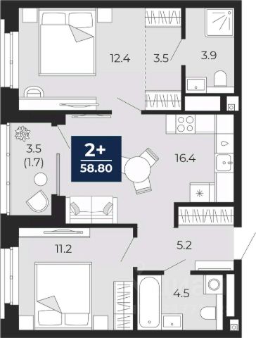 Двухуровневая квартира с кухней-гостиной и тремя спальнями в кварталах "На Минской". Особенности планировки: балкон, гардеробная, двухуровневая, мастер-спальня, окна в пол, окно в санузле, панорамное остекление, постирочная, предчистовая отделка, разнесённые спальни, терраса на крыше.