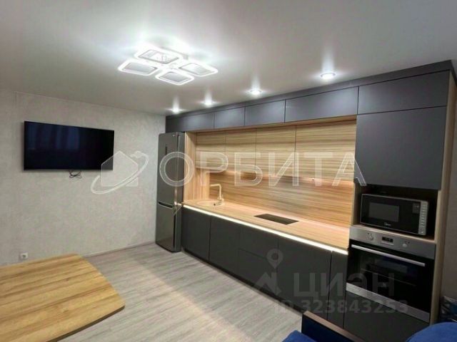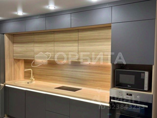 кухня-гостиная 17,07 кв.м.(посудомойка Leran, варочная панель Gorenie, духовой шкаф Leran, встроенная микроволновка Leran и холодильник встроенный Haier, вытяжка Leran, подвесная тумба)