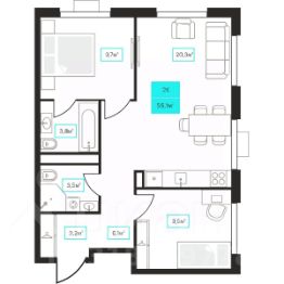 Продаётся 2-комнатная квартира в строящемся доме (Дом 6к1), срок сдачи: III-кв. 2026, общей площадью 56.1 кв.м., на 9 этаже. Новый жилой комплекс "Futuro" от застройщика "newton" расположен в г. Тюмень на Ставропольской улице.