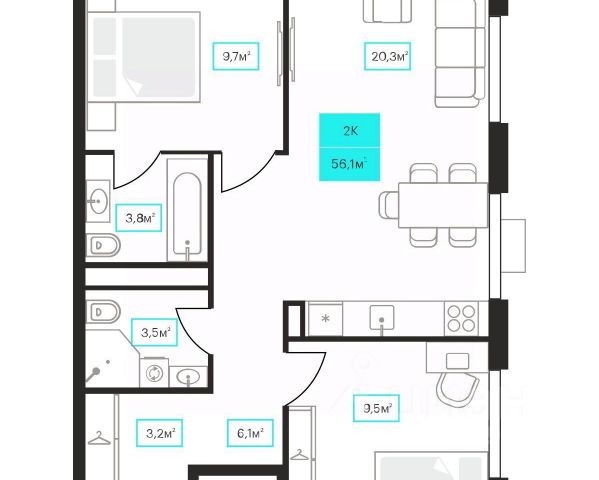 Продаётся 2-комнатная квартира в строящемся доме (ГП-1), срок сдачи: IV-кв. 2028, общей площадью 57.1 кв.м., на 9 этаже. Новый жилой комплекс "Континент" от Специализированного застройщика "Расцвет" расположен по адресу: г. Тюмень, по ул. Червишевский Тракт.