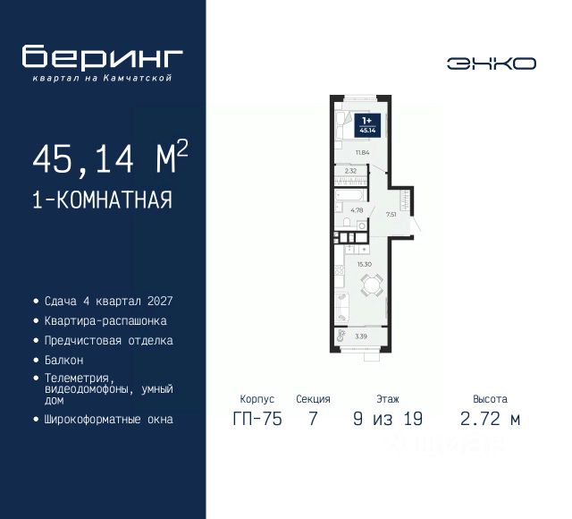 3-комн. квартира от застройщика с предчистовой отделкой в ЖК "Беринг" на 9 этаже. Общая площадь: 78.5 кв.м., жилая: 38.31 кв.м., площадь просторной кухни-столовой: 14.7 кв.м. Квартира - распашонка, без проходных комнат, окна выходят на paзные стороны дома. В квартире один балкон и одна лоджия, два совмещенных санузла. Высота потолков 2.72 м. Дом монолитный, многоподъездный, переменной этажности, от 17 до 24 этажей. Квартира находится в 5-й секции высотой 19 этажей в корпусе ГП-75. На этаже 4 квартиры. В подъезде 2 пассажирских и 1 грузовой лифт. Окончание строительства - 4 квартал 2027 года. Оформление сделки по договору долевого участия. Подобно знаменитому исследователю, мы чувствуем себя первооткрывателями этой локации. Хотим показать новую суть места, сформировать для вас жизненный опыт, которого ещё не было. Беринг — район зелёного цвета. Беринг — район, который откроется вам с другой стороны. Впечатлит новым уровнем комфорта и качеством жизни. Беринг — открытие на карте города. Первый квартал расположен в районе Тура, в границах улиц: Камчатская Западносибирская Энтузиастов. Вокруг уже есть всё для того, чтобы ежедневная рутина была лишь частью жизни и не доставляла дискомфорта. Школы и детские сады, магазины и аптеки, поликлиника, места для семейного отдыха, пеших и велопрогулок, и даже рыбалки. Масштабное озеленение дворов — визитная карточка ЭНКО и ваш оазис спокойствия, чтобы отвлечься от повседневности. Раскидистые деревья, кустарники, травы и цветы — осталось остановиться, вдохнуть и расслабиться, глядя на эту природную красоту. Стилистика подъездов продолжает концепцию Беринга, вдохновлённого Камчаткой: сдержанный, но при этом впечатляющий дизайн соседствует с удобством и функциональностью. #zM9Aoo