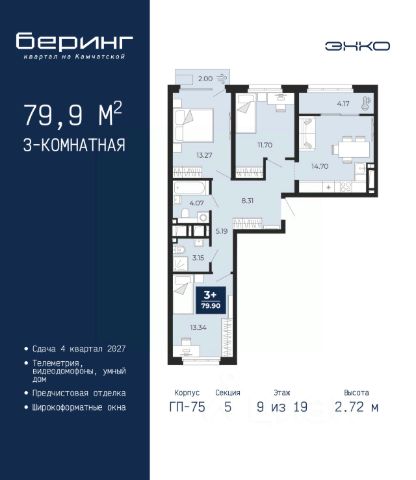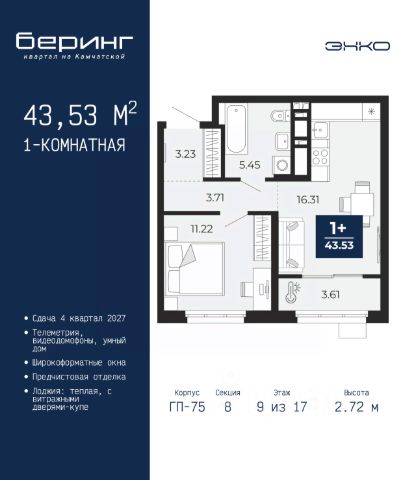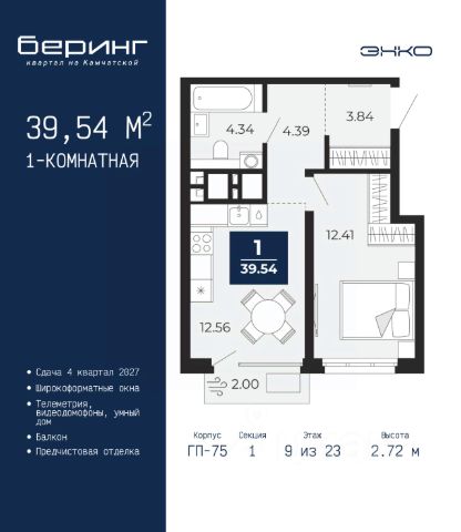 Спешите оформить бронирование на этих условиях, срок акции ограничен! Стоимость квартиры указана со скидкой, ваша экономия составит 561,371 руб. По всем вопросам звоните в офис продаж, наши менеджеры вам все расскажут. Продается однокомнатная квартира с предчистовой отделкой в ЖК "Беринг" на 9 этаже. Общая площадь: 38.26 кв.м., жилая: 12.95 кв.м., площадь просторной кухни-столовой: 15.48 кв.м. Все окна выходят на одну сторону. В квартире одна лоджия, один совмещенный санузел. Высота потолков 2.75 м. Дом монолитный, многоподъездный, переменной этажности, от 9 до 22 этажей. Квартира находится в 4-й секции высотой 12 этажей в корпусе ГП-73. На этаже 8 квартир. В подъезде 1 пассажирский и 1 грузовой лифт. Окончание строительства - 1 квартал 2026 года. Оформление сделки по договору долевого участия. Подобно знаменитому исследователю, мы чувствуем себя первооткрывателями этой локации. Хотим показать новую суть места, сформировать для вас жизненный опыт, которого ещё не было. Беринг — район зелёного цвета. Беринг — район, который откроется вам с другой стороны. Впечатлит новым уровнем комфорта и качеством жизни. Беринг — открытие на карте города. Первый квартал расположен в районе Тура, в границах улиц: Камчатская Западносибирская Энтузиастов. Вокруг уже есть всё для того, чтобы ежедневная рутина была лишь частью жизни и не доставляла дискомфорта. Школы и детские сады, магазины и аптеки, поликлиника, места для семейного отдыха, пеших и велопрогулок, и даже рыбалки. Масштабное озеленение дворов — визитная карточка ЭНКО и ваш оазис спокойствия, чтобы отвлечься от повседневности. Раскидистые деревья, кустарники, травы и цветы — осталось остановиться, вдохнуть и расслабиться, глядя на эту природную красоту. Стилистика подъездов продолжает концепцию Беринга, вдохновлённого Камчаткой: сдержанный, но при этом впечатляющий дизайн соседствует с удобством и функциональностью. #zMddgD