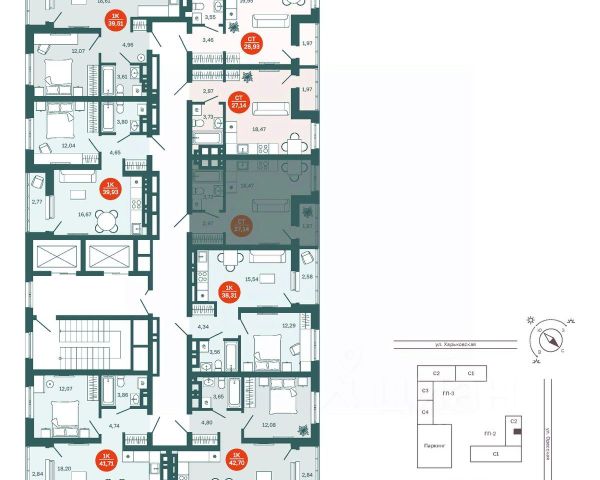 Комплекс "Новин" предлагает закрытый двор без машин, что создает атмосферу уюта и спокойствия. Здесь вы найдете современный дизайнерский холл с картинами, два скоростных лифта Otis, а также помещения для колясок и велосипедов на первых этажах. Удобная навигация поможет вашим гостям без труда добраться до квартиры.