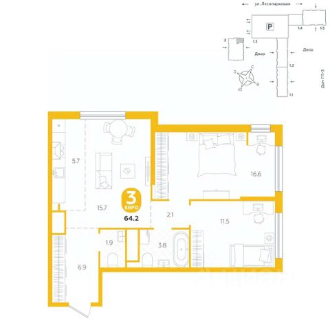 Квартира располагается в ГК "Чистые Пруды" от "Паритет девелопмент". Это флагманский проект компании в Тюмени. Расположение вдали от шумных улиц и оживленного центра создает ощущение жизни на природе и окружает тишиной и спокойствием. Есть вся необходимая социальная и коммерческая инфраструктура: магазины и сфера услуг на первых этажах. Школы, сады, поликлиника, парки в шаговой доступности. Квартал строится в районе Новой Лесобазы. Рядом выезд на объездную, что существенно экономит время. Поездка до центра города на автомобиле занимает 15-20 минут. Городские кварталы "Чистые Пруды"сформирован из домов переменной этажности и многоуровневых паркингов. Ввод 1 очереди строительства запланирован на II кв. 2028 года. Всё благоустройство квартала представлено двумя функциональными зонами: приватная внутри дворовая и общественная. Каждый закрытый двор имеет выход на единую променадную зону - бульвар. Концепция благоустройства основана на принципе модульности, что формирует основную идею приватности. Приватность проекта подчеркивает его особенный климат внутри. Модульное благоустройство позволит максимально эффективно использовать пространство двора и удовлетворить потребности различных категорий жителей. В квартирах базово выполнена улучшенная черновая отделка, которая включает в себя: выровненные стены, стяжка пола с шумоизоляцией, горизонтальная разводка отопления, установлены счетчики с телеметрией, окна с 5-камерным профилем и надежные входные двери. При желании можно добавить ремонт от застройщика и включить его в стоимость ипотеки, что позволит сэкономить на стройматериалах и переехать сразу после получения ключей. Характеристики квартиры: этаж - 9 количество комнат - 3 номер помещения - 75 площадь квартиры - 64,2 кв.м Гармоничные пропорции и большие окна наполняют пространство светом, создавая уютную атмосферу. Умное зонирование позволяет удобно организовать как рабочую, так и жилую зоны, что особенно важно для современных жителей. Санузел спроектирован с учетом всех потребностей: здесь есть ванна и место для стиральной машины. Каждый метр квартиры используется с максимальной эффективностью, что делает эту планировку отличным выбором для тех, кто ценит комфорт и удобство.