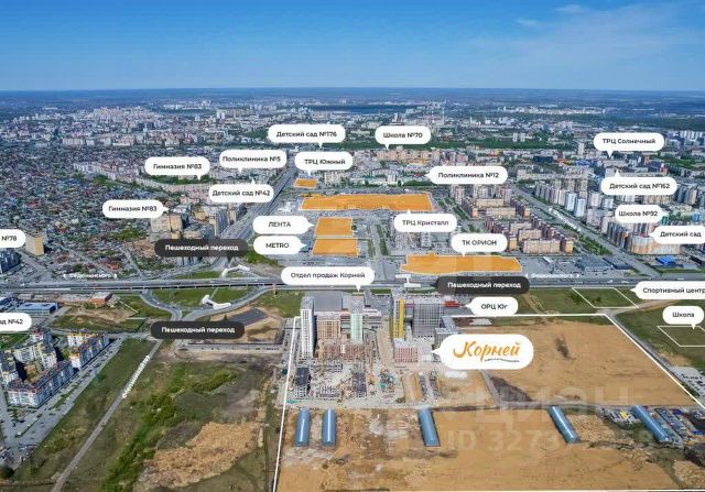 В шаговой доступности Набережная, 3 школы, детские сады, а также близость ВУЗов.