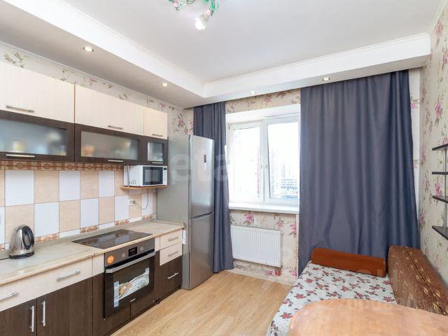 Удобная планировка, кухня гостинная с кухонным гарнитуром и техникой, обеденной зоной, удобным большим раскладным диваном и ТВ зоной.