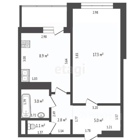 • ✅ Объект наибольшей площади: 43,4 м²