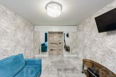 Коридор оборудован вместительным шкафом-купе и прихожей, что позволяет удобно разместить верхнюю одежду и обувь. В комнате есть кладовка с полками и тумбочками отличное решение для хранения вещей.