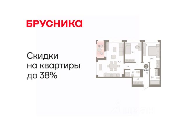 Квартира в счёт первоначального взноса по программе обмена. Информация по телефону, наши менеджеры вам все расскажут! Продается двухкомнатная квартира с предчистовой отделкой в ЖК "Дом у озера" на 4 этаже. Общая площадь: 78.37 кв.м., жилая: 26.5 кв.м., площадь просторной кухни-гостиной: 26.4 кв.м. Угловая квартира, идеально подойдет любителям тишины и панорамных видов. В квартире одна лоджия, два совмещенных санузла. Высота потолков 2.7 м. Дом монолитный, многоподъездный, переменной этажности, от 2 до 8 этажей. Квартира находится в 4-й секции высотой 8 этажей в корпусе 3. На этаже 5 квартир. В подъезде 1 грузовой лифт. Окончание строительства - 2 квартал 2027 года. Оформление сделки по договору долевого участия. Квартира с кухней-гостиной и двумя спальнями в Доме у озера. Особенности планировки: гардеробная, вид во двор, лоджия, разнесённые спальни, предчистовая отделка, мастер-спальня. квартиры в нашей базе: ДМУ03-Ж4.4.5. "Дом у озера" является продолжением "Европейского квартала". Он расположен в центре заречного района города. В 2030 году здесь появится квартал, состоящий из урбан-вилл, таунхаусов, секционных домов и башни. Вокруг уже сформирована необходимая инфраструктура: детские сады, школы, спортивный комплекс, продуктовые магазины, аптеки, кофейни, рестораны и салоны красоты. Путь до центра города занимает 7 минут на машине. Озеро Тихое — ценный рекреационный ресурс. Брусника вернула ему прежнее значение и сделала новой точкой притяжения для жителей микрорайона. Ключевым элементом концепции благоустройства стала вода. В каждой части квартала архитекторы нашли для нее свою форму. Вдоль пешеходных улиц разместили искусственные ручьи, на центральной площади — фонтан и дождевые сады. Основная точка притяжения жителей — озеро и выходящий на его сторону променад. Здесь мы организуем смотровые площадки и расположим летние террасы кафе и ресторанов. Тесную связь застройки с ландшафтом обеспечивает многоуровневое озеленение. Буфер из деревьев и кустарников по периметру квартала превращается в естественный ветрозащитный экран. Такое решение позволяет создать на территории "Дома у озера" комфортный микроклимат. Подъезды "Дома у озера" с прозрачными входными группами и большими лифтами. Для мест общего пользования архитекторы разработали новую интерьерную коллекцию, вдохновленную эклектичными восточными мотивами. В отделке сочетаются коричневый, желтый и белый цвета, повторяющие колористические решения фасадов. Декоративные перегородки, установленные в лобби, напоминают машрабию — элемент арабской архитектуры в виде узорной решетки. За счет мягкой мебели, многоуровневого освещения теплых оттенков и предметов декора (например, зеркал и картин) холлы воспринимаются как продолжение квартиры. #zm9b6w Квартиры в ипотеку в округе Центральный в городе Тюмень.