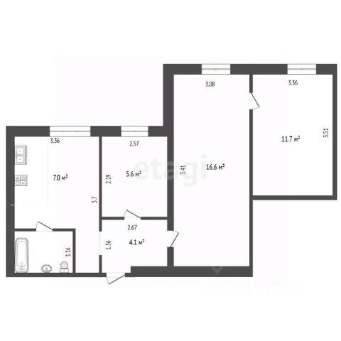 Квартира с удобной планировкой. Комнаты светлые, правильной формы, просторная кухня-столовая. Санузел совмещённый, отделка кафель.