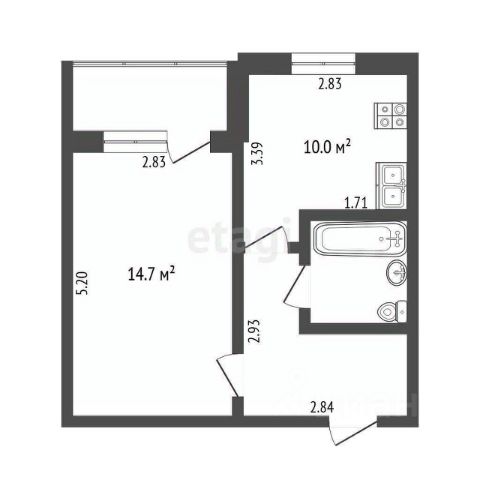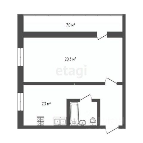 Отличная планировка - просторная кухня-гостиная и стильная спальня.
