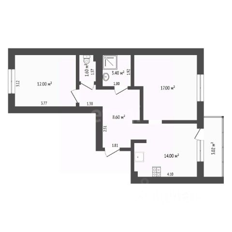 Площадь квартиры 56,4м2+ 3,4м2 балкон.