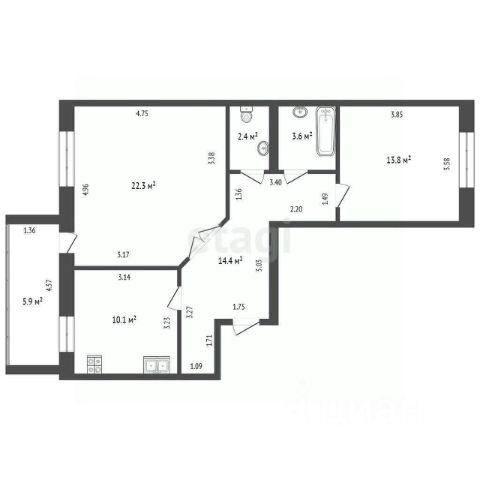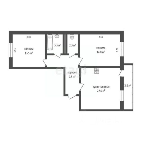 Квартира общей площадью 65,7 кв.м. с продуманным зонированием: