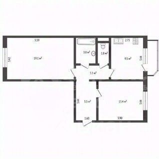 - 2 комната 19,3 кв.м.,