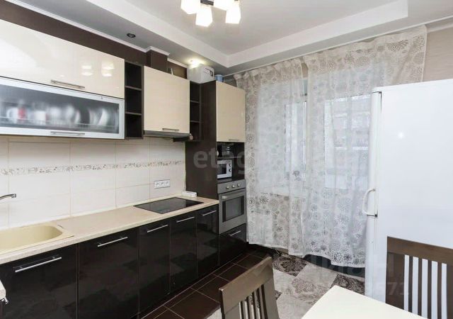 В самой квартире выполнен современный ремонт. Жилая площадь составляет 50.2 квадратных метра, а кухня занимает 11 квадратных метров, частично объединена с залом, что делает ее еще просторней. К вашим услугам также раздельный санузел и уютный балкон. Напольное покрытие кухня - керамогранит, детская - пробка, спальня - паркет, ванная, туалет - плитка, все остальные зоны ламинат Теплый пол в кухне и туалете дает ощущение комфорта в межсезонье. В квартире много встроенной мебели в отличном состоянии. В спальне авторская роспись Н. Таберт. Подъезд чистый, аккуратный. На этаже есть общая кладовая.