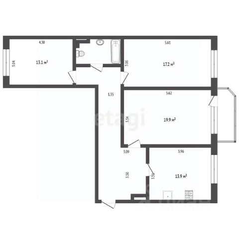 В ванной, стены и пол плитка, большая угловая ванна, заменены все трубы,на воду установлены счетчики учета, прошедшие поверку.