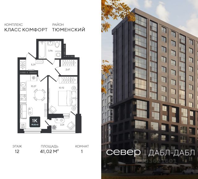 Продаётся квартира площадью 38.44 м2 в жилом комплексе "Дабл-Дабл". Квартира находится на 5 этаже, жилая площадь квартиры м2, площадь просторной кухни — м2. Среди особенностей планировки — изолированные комнаты с окнами на одну сторону, 1 совмещённый санузел. Срок сдачи — II кв. 2028 "Дабл-Дабл" - уединенный семейный квартал с всепогодным двухуровневым двором. Природная идиллия в 20 минутах от центра "Дабл-Дабл" — спокойная жизнь рядом с природой в 20 минутах от центра Тюмени. Квартал окружён лесами и парками: день начинается пробежкой среди сосен. Рядом центр иппотерапии для прогулок и верховой езды. Малоэтажная застройка создаёт загородный уют. Свежий воздух и тишина — с удобной инфраструктурой. ТРЦ "Кристалл" и "Колумб" с магазинами, ресторанами, кино — в 510 минутах. Остановка в 300 м, объездная — в 1300 м, удобные выезды на Московский тракт. Всё для детей рядом — от сада до гимназии • Еврогимназия — 3 минуты пешком; • Московская школа — 10 минут на авто; • Гимназия 4 — 11 минут; • Детские сады: "Мир гармонии", "Антошка", "Сказка", Lokki Club — от 3 до 10 минут. Экологичное окружение, удобная логистика и безопасные маршруты — ключевые преимущества района для семейной жизни. Семейное пространство, продуманное до мелочей Большие окна, лоджии до 8 м², окна в ванных. В некоторых квартирах террасы до 15 м² для отдыха и игр. Удобство и комфорт во всех измерениях Наземная парковка, кладовые до 8,48 м², магазины на первых этажах. Первый в Тюмени двухуровневый двор-парк Верхний уровень укрывает от дождя и снега. Нижний — активная зона без машин: спортплощадки, воркаут, игровые решения для детей. Надёжность и умные технологии Дом построен с учётом сибирского климата: монолитный каркас, фундамент, энергоэффективный вентфасад. Негорючие материалы. Технологии: видеодомофоны, тихие лифты, автопередача показаний счётчиков. Безопасный и энергоэффективный дом Высокий класс энергоэффективности снижает расходы на ЖКХ. Мощность до 10 кВт на квартиру для любой техники.