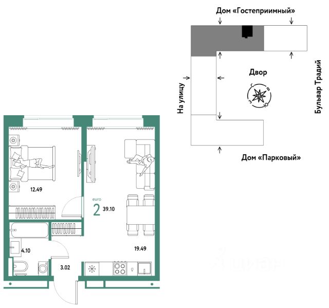 Объявление от застройщика Страна Девелопмент. Покупка квартиры защищена банком. Продается 2комнатная квартира на 12 этаже от застройщика Страна Девелопмент. Площадь квартиры 47,73 кв. м. О ПРОЕКТЕ Микрорайон "Домашний" — это 6 очередей строительства, 24 дома переменной этажности. Каждый дом уникальный. Внутри микрорайона появится огромный пешеходный бульвар — бульвар Традиций. Центром притяжения станут открытые пространства для отдыха жителей и гостей микрорайона, которые легко меняются под сезонные сценарии отдыха: новогодняя елка, ярмарки, кинопоказы и т.д. У каждого дома обустроен приватный двор с зонами для активного и спокойного отдыха. В активной зоне детские разновозрастные площадки с горками, песочницами и качелями, воркаут-зоны. В спокойной — скамейки, мини-амфитеатры, закрытые перголы. Уютной атмосферу сделает обильное озеленение и освещение "домашними" торшерами. ОТДЕЛКА Квартиры сдаются с предчистовой отделкой. Все грязные работы выполнены: произведена разводка электричества и отопления; выполнена стяжка пола; стены выровнены "под маяк". В квартире установлены розетки, выключатели и радиаторы. На входе — надежная стальная дверь. Вам остается только выбрать материалы и начать ремонт Доступна опция "Ремонт от застройщика". Стоимость можно включить в ипотеку. Вы можете заказать один из пяти стилей на выбор: шалфей, хлопковая нить, серый шторм, голубой вереск, белый камень. КУХНЯ С ТЕХНИКОЙ Теперь дополнительно к ремонту можно заказать кухню со встроенной техникой. Эргономику и функциональное наполнение разработали под каждую планировку. ПОЛНАЯ МЕБЛИРОВКА Больше не нужно тратить время даже на подбор, доставку и сборку мебели.Вы можете включить в стоимость квартиры с ремонтом полную меблировку. - Что входит в меблировку? - Кухня с техникой и сантехникой - Диван - Кровать - Шкаф в спальне - Шкаф в прихожей На консультации менеджер подскажет, какие акции действуют, и как получить одобрение по ипотеке с низкой ставкой. Более подробная информация по телефону.