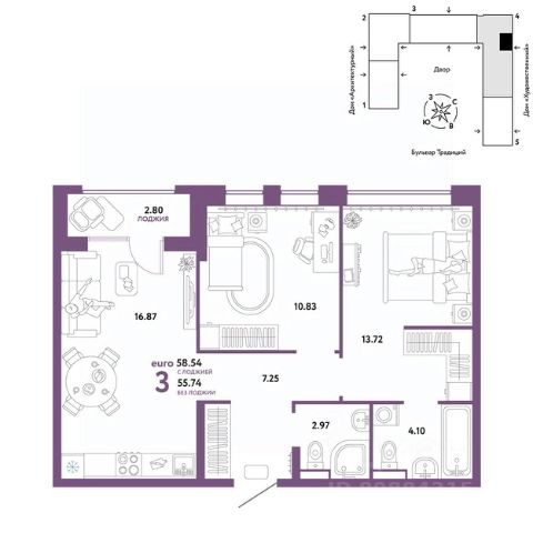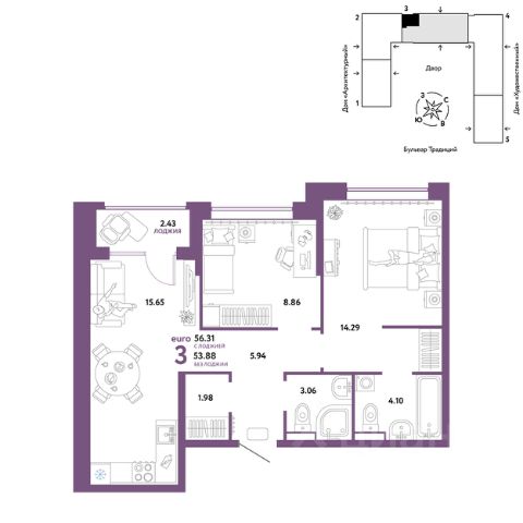 Объявление от застройщика Страна Девелопмент. Покупка квартиры защищена банком. Продается 2комнатная квартира на 5 этаже от застройщика Страна Девелопмент. Площадь квартиры 48,96 кв. м. О ПРOЕКТЕ Mикpорайон "Домaшний" — этo 6 очередей стpоитeльcтвa, 24 дома пеpемeннoй этажнoсти. Каждый дом уникальный. Внутри микрорайона появится огромный пешеходный бульвар — бульвар Традиций. Центром притяжения станут открытые пространства для отдыха жителей и гостей микрорайона, которые легко меняются под сезонные сценарии отдыха: новогодняя елка, ярмарки, кинопоказы и т.д. У каждого дома обустроен приватный двор с зонами для активного и спокойного отдыха. В активной зоне детские разновозрастные площадки с горками, песочницами и качелями, воркаут-зоны. В спокойной — скамейки, мини-амфитеатры, закрытые перголы. Уютной атмосферу сделает обильное озеленение и освещение "домашними" торшерами. ОТДЕЛКА Квартиры сдаются с предчистовой отделкой. Все грязные работы выполнены: произведена разводка электричества и отопления; выполнена стяжка пола; стены выровнены "под маяк". В квартире установлены розетки, выключатели и радиаторы. На входе — надежная стальная дверь. Вам остается только выбрать материалы и начать ремонт Доступна опция "Ремонт от застройщика". Стоимость можно включить в ипотеку. КУХНЯ С ТЕХНИКОЙ Теперь дополнительно к ремонту можно заказать кухню со встроенной техникой. Эргономику и функциональное наполнение разработали под каждую планировку. ПОЛНАЯ МЕБЛИРОВКА Больше не нужно тратить время даже на подбор, доставку и сборку мебели.Вы можете включить в стоимость квартиры с ремонтом полную меблировку. - Что входит в меблировку? - Кухня с техникой и сантехникой - Диван - Кровать - Шкаф в спальне - Шкаф в прихожей На консультации менеджер подскажет, какие акции действуют, и как получить одобрение по ипотеке с низкой ставкой. Более подробная информация по телефону. Застройщик ООО СЗ "Страна Запад". Проектные декларации на сайте наш.дом.рф.