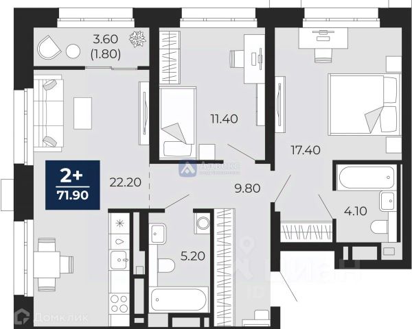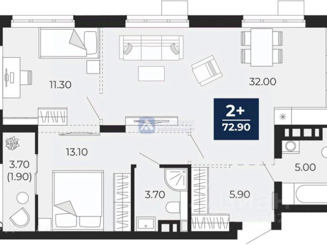 2-комн. квартира с предчистовой отделкой в ЖК "Окинава" на 5 этаже. Общая площадь: 64.36 кв.м., жилая: 29.3 кв.м., площадь просторной кухни-столовой: 13.83 кв.м. Квартира угловая, очень светлая, естественная вентиляция при открытии окон. В квартире одна лоджия, один совмещенный и один раздельный санузел. Высота потолков 2.7 м.