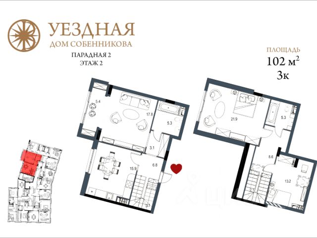 Продается 2-уровневая квартира на 2 и 3 этаже площадью 102 кв.м.Приступать к ремонтным работам можно сразу после приобретения квартиры.Высокие потолки - 3,32м. Квартира имеет два отдельных входа, как со второго, так и с третьего этажа. Планировкой предусмотрены две мастер спальни, гостиная с панорамными окнами, гардеробная на каждом из уровней и постирочная. Большая кухонная зона позволит Вам насладиться багреющим закатами за вкусным вечерним ужином. Квартира совмещает в себе достоинства загородного дома с мансардным этажом и квартиры в престижном районе в историческом центре города.